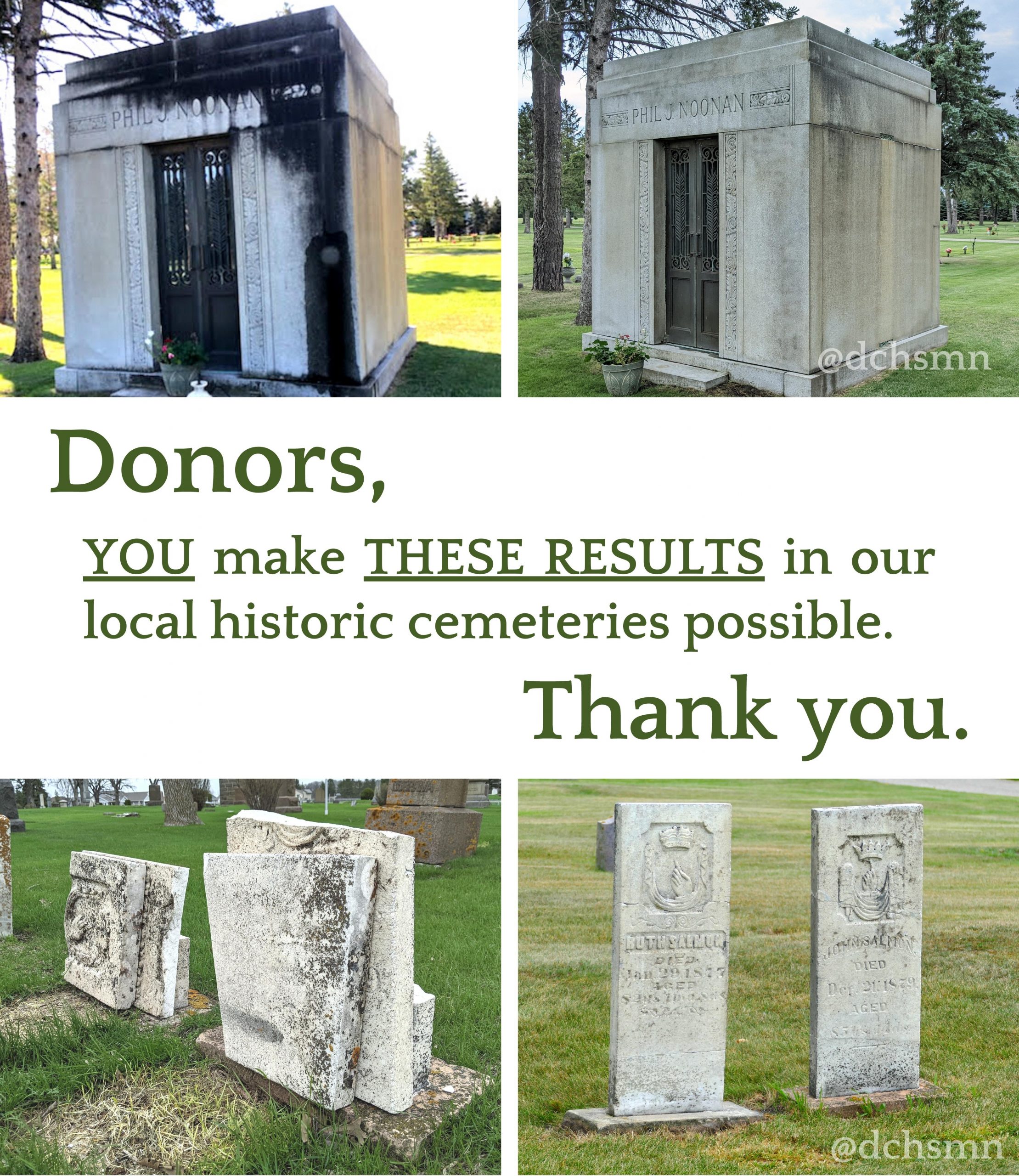 Donations can easily be made online here: https://www.givemn.org/story/Dchs-Cemetery