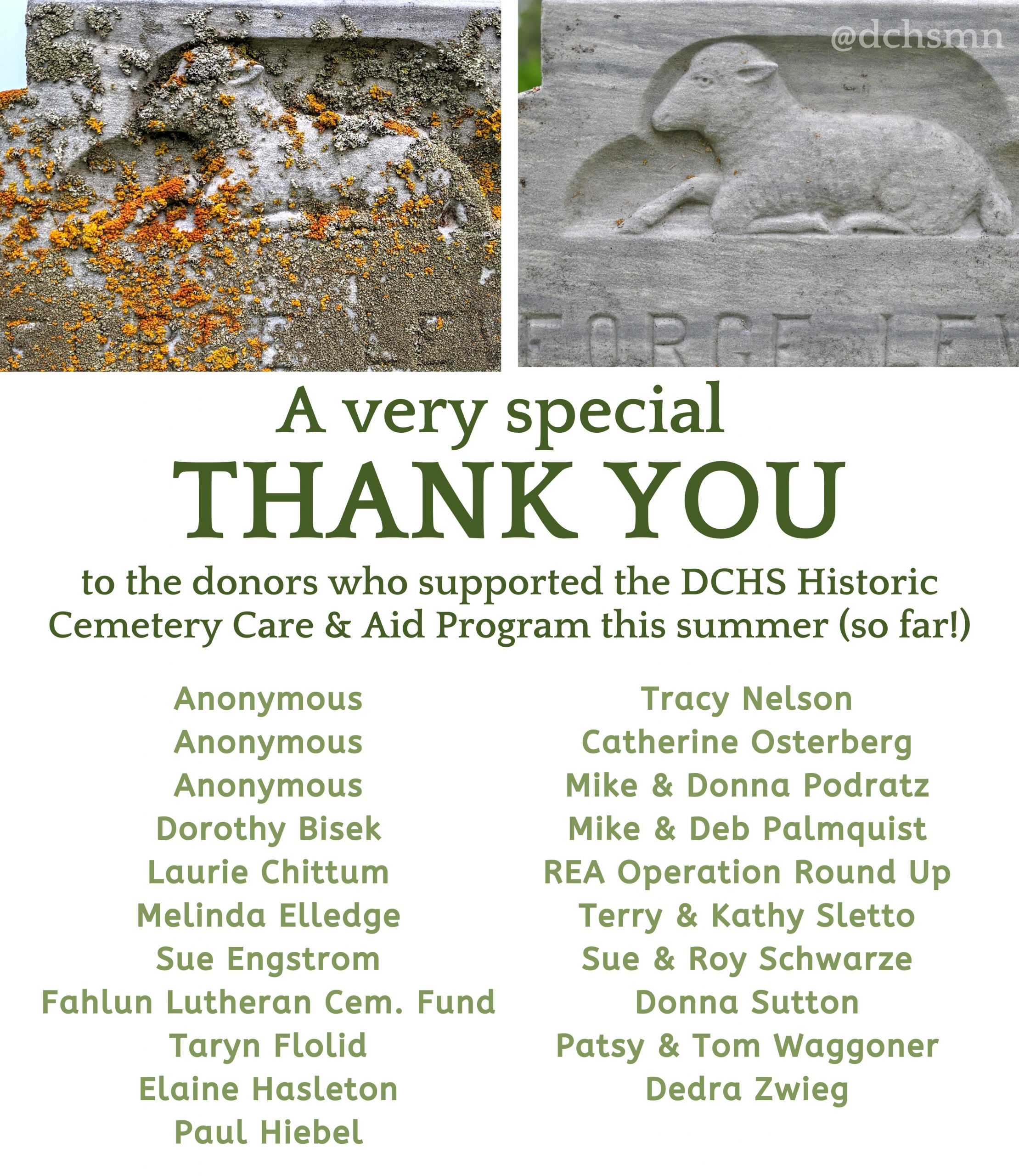 Please join us in offering a special & enormous THANK YOU to those who have donated to the DCHS Historic Cemetery Care & Aid Program.