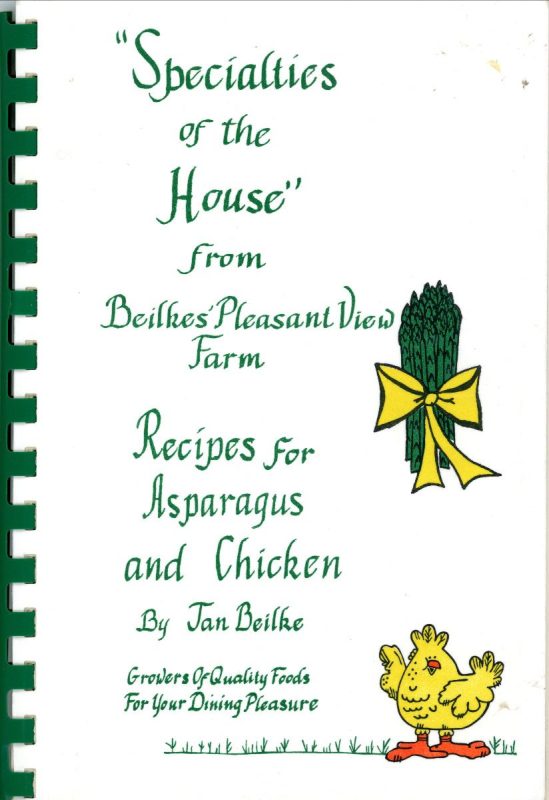 (from “Specialties of the House from Beilkes’ Pleasant View Farm: Recipes for Asparagus and Chicken,” by Jan Beilke of Beilke’s Pleasant View Farm near Carlos, MN, 1987)