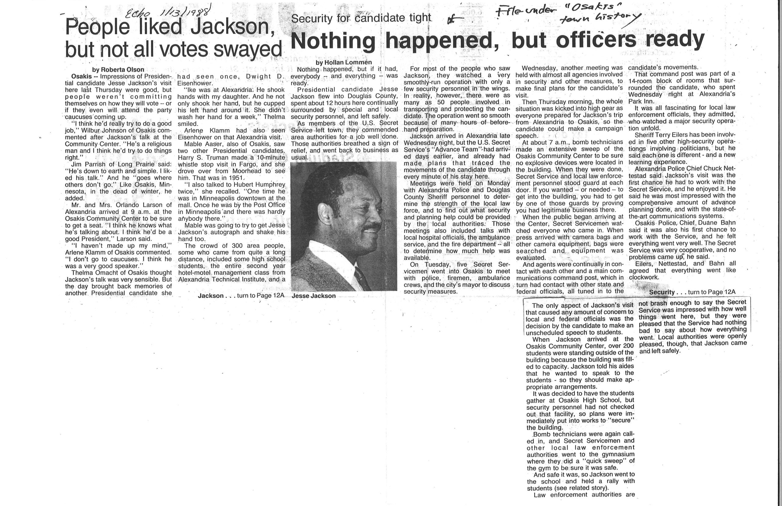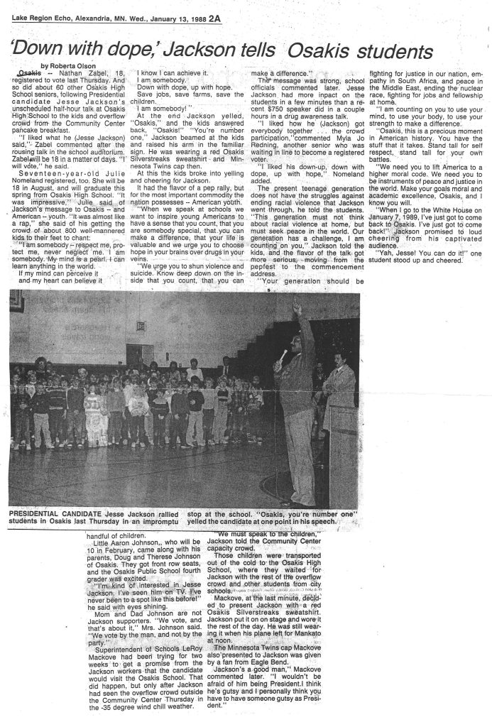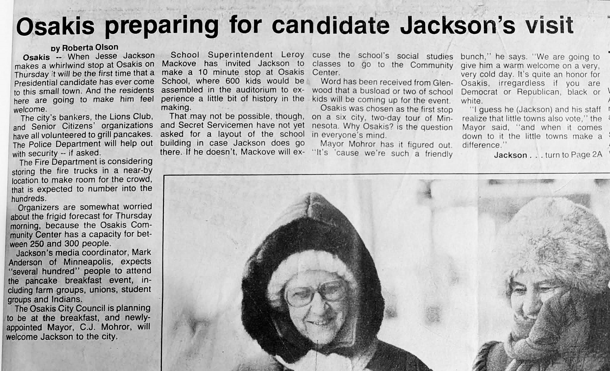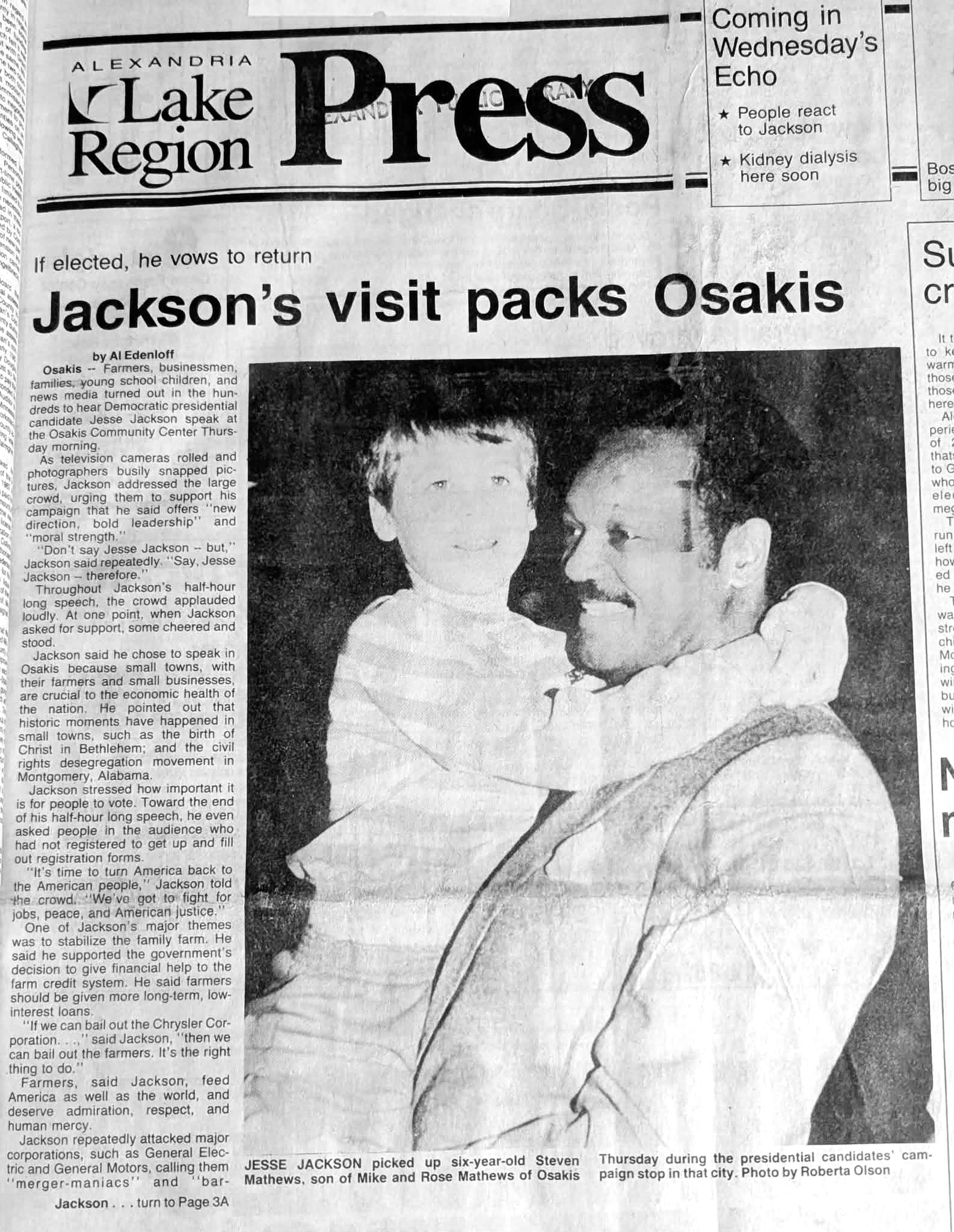 Rev. Jesse Jackson was First Presidential Candidate to visit Osakis