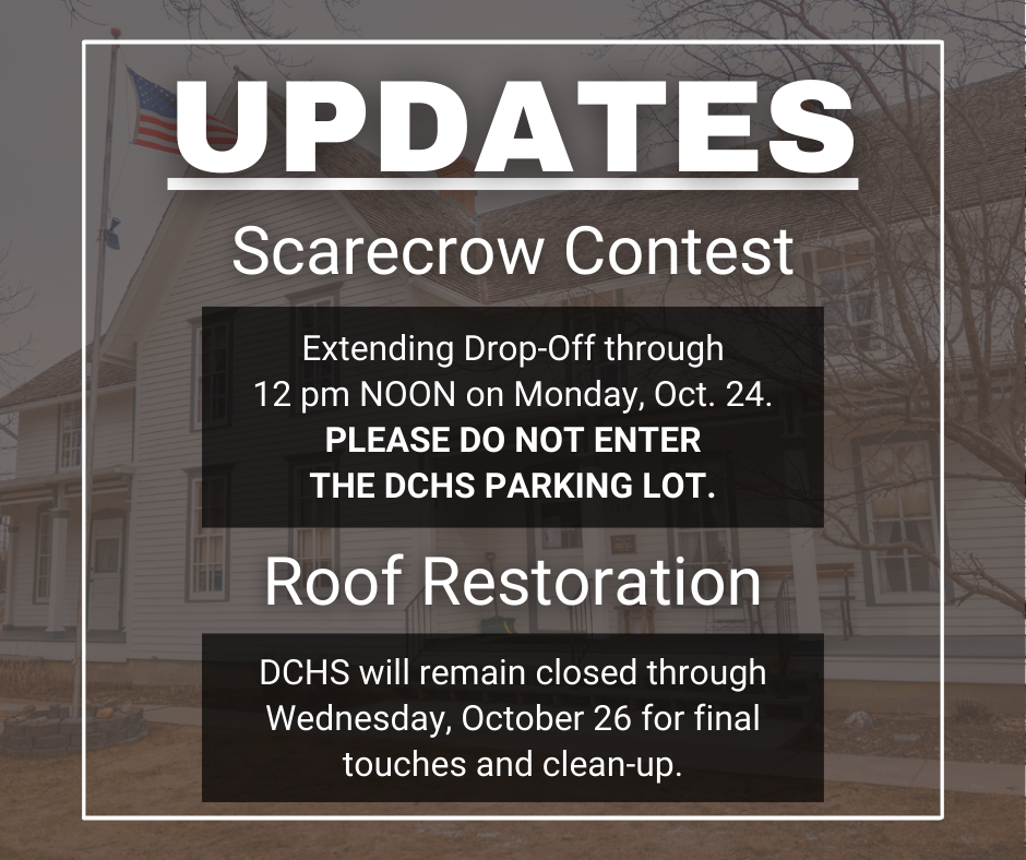 Thank you all your for your flexibility during the roof restoration project! We have a couple big updates on extending the scarecrow contest deadline and further closures. We can't wait for you to drop off your scarecrows for DCHS's -- Annual