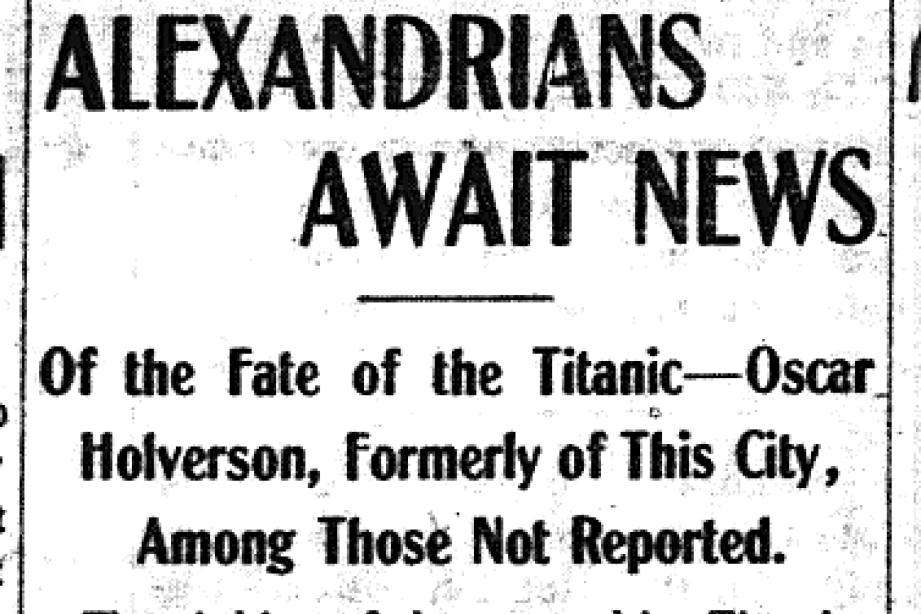 110 years ago today, late on April 14, 1912, the “unsinkable” RMS Titanic struck an iceberg. Among those that perished was Alexander Oscar Holverson, who had grown up in Urness and Alexandria in Douglas County, MN. One of Mr. Holverson’s