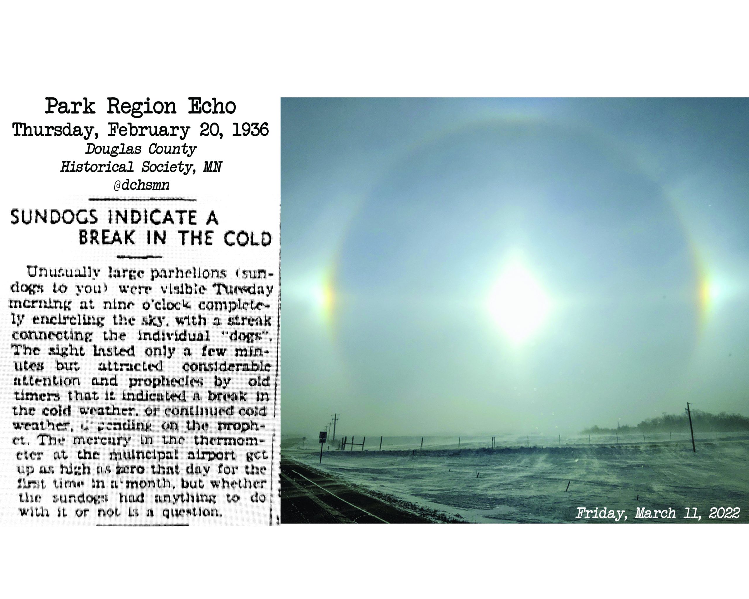 Park Region Echo, Feb. 20, 1936 – “Sundogs indicate a break in the cold”